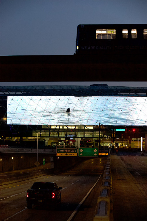 Plunge is a video installation that was a public commission adapted for the Cobo Center Big Screen, Marquee Series in Detroit, Michigan.