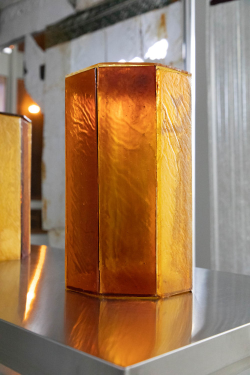 A table of sculptural sugar vessels proposes the commodity in reference to what had been historically the highest-traded product for roughly 400 years. Symbolically, sugarcane notes the transatlantic slave trade at the peak of European colonialism while also illustrating a ceremony on how the global economy came to blossom and its aftermath. Even today, sugar's ritual to pleasure is unrivaled, holding novelties of memory, production, and demand and revealing an unawareness in the active individual participation within unavoidable global markets.